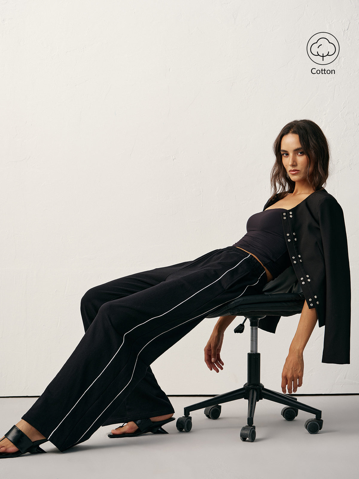 Cotton Blend Mid-Waist Side Stripe Sweatpants